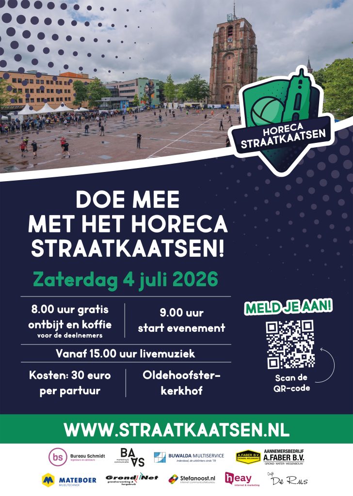 Het Horeca Straatkaatsen is sinds 1989 een begrip in Leeuwarden en omstreken. Een kaatspartij met zachte bal die ieder jaar in begin juli wordt gehouden ‘onder’ de Oldehove in Leeuwarden. Kaatsen voor je favoriete horecagelegenheid waarbij gezelligheid voorop staat!
